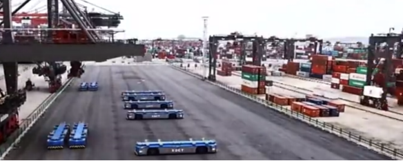 洋山深水港区位于杭州湾口外的浙江省嵊泗崎岖列岛,截止到2017年,是全球的智能集装箱码头。洋山港内所运行的AGV数量高达一百多台,其AGV技术及其控制系统均达到世界顶尖水平。AGV的主要功能是自动转运集装箱,而且还具有高度的智能化。在众多AGV同时运行时,每台AGV都会根据实时的路况选择最优的行驶路线;AGV的轮胎直径高达1.8米,但定点误差却不超过2厘米;AGV的自动充电技术,已经可以实现每天24小时工作,全年无休,彻底解决了运行续航的问题,极大的提高了运行效率。洋山深水港区AGV全自动码头的革新必将引起一场AGV全自动码头的潮流。