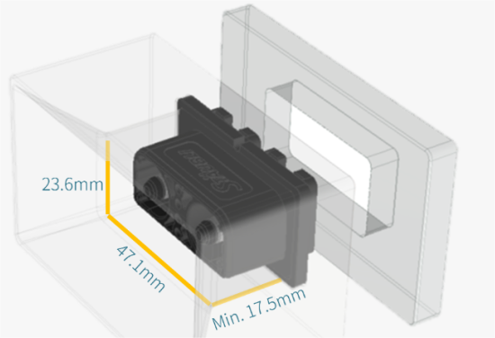以用户的需求为基准,史陶比尔在AGV-CC6充电连接器上投入大量研发,使产品兼具多种出色性能:安装空间紧凑:AGV-CC6在尺寸上不断缩小,车端喇叭口直段安装尺寸为23.6×47.1mm,最小安装深度仅17.5mm,紧凑的结构设计符合喇叭口的扁平化趋势,特别是在深度方向上的压缩,极大地节省了喇叭口的安装空间。相较于旧款产品,AGV-CC6在车端的安装空间减少了75%左右。